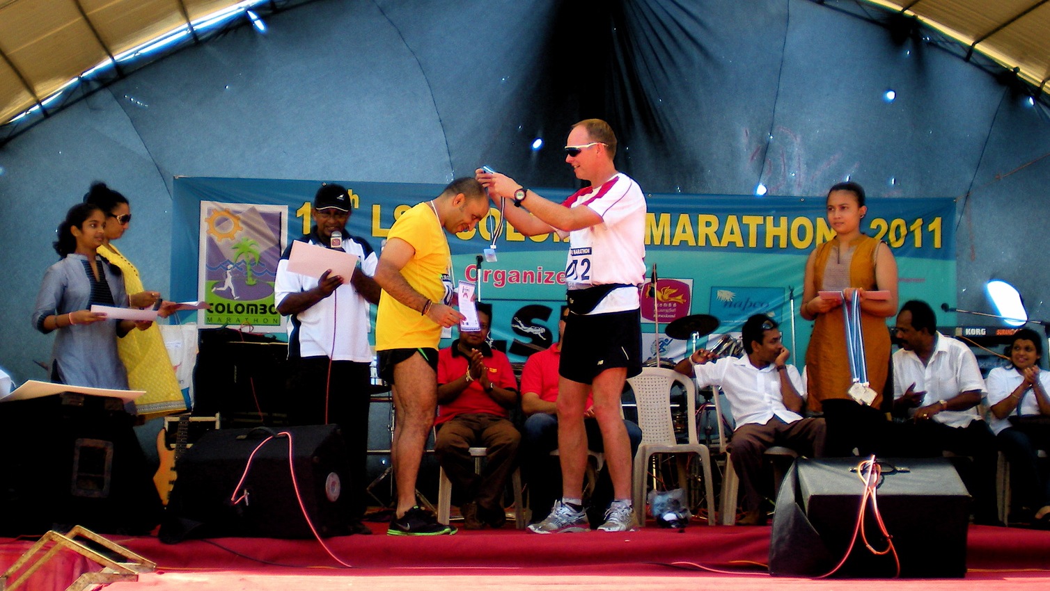 We were amongst the few ‘international’ runners in that event. Although the event has seen many editions before (including one edition cancelled due to a bomb blast), it still lacked some of the basic ingredients of a ‘quality’ running event. All the runners were grouped together irrespective of the distance they are likely to run; The start was delayed by 20 minutes to ensure that photographers get good pictures of the starting line-up; Aid-stations carried nothing other than water and were non-existent beyond certain distance; the route was not cordoned from traffic, atleast within Colombo and many such complaints. The weather made the conditions even worse. At the 24th KM, I almost chose to quit the event and give up. Neville had made some extra preparations for the event. He planned a mobile aid-station in the car that we meant to drop us. He further prepared a few bottles of isotonic which came handy during the event.