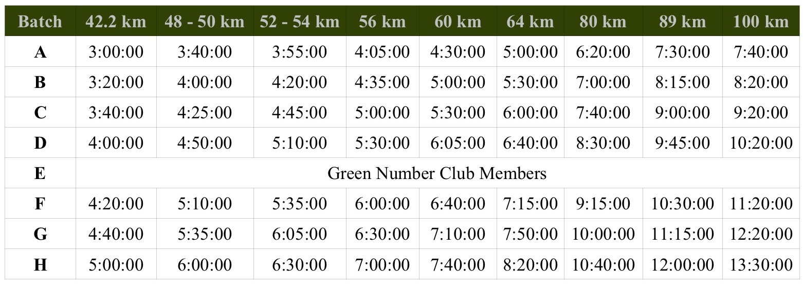 Qualifying timings for various distances. Source: http://www.comrades.com