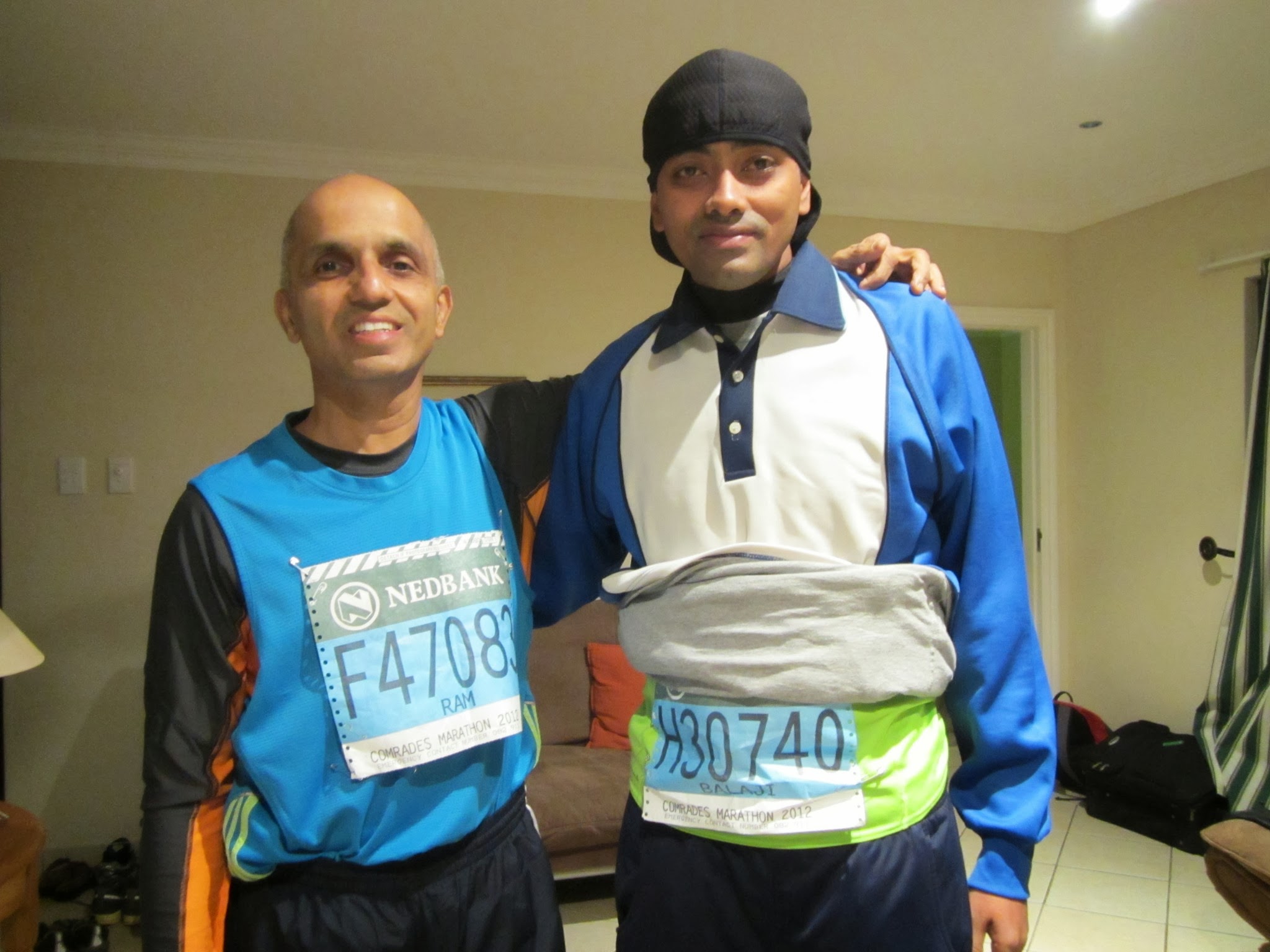 Further confusion reigned during the day before marathon. We had to change the house on Saturday afternoon and all our plans have to be changed. Ram was in a hurry to reach the airport to pick up his family and we had no idea of how to reach Pietermaritzburg, where the race was scheduled to start. It was then our neighbour, Gideon walked up to us and offered his help. More about his priceless help in Ram’s blog. After a dinner in an Indian restaurant, we settled down to catch up sleep for less than couple of hours. At 1:30 AM, we were scheduled to depart from our place to take a bus. This wasn’t exactly the kind of pre-race evening that either of us would have preferred. The Zulu prayer and the warmth of the fellow runners on the bus helped us to forget some of the the tough times leading to the run and look forward to the run more positively.