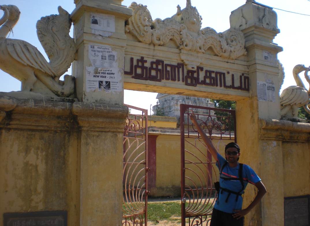 Before Thiruvengadu, we had another gentleman who offered his house for us to rest and also showed us an easier route to the place. It was a welcome rest as the day was getting really tough on us. We finally reached Thiruvengadu at about 11:30 AM in time to have a dharshan of the Lord Budhan (Planet Mercury). A rest house (constructed in 1960s and still serves well) was arranged for us to refresh and have our lunch. The facilities were excellent for us to recover from the heat and plan for the rest of the afternoon run.