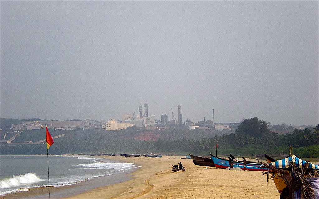 The final day of the ride was a relaxed one. I had to cover something like 30-40 Kms, depending on diversions, over 4-5 hours. I had my breakfast at Margao and started exploring an alternative road along the coast to reach Vasco. The only attraction of the day was taking photographs of few old houses and admiring some of the churches on the way. The roads were really good for a cyclist as I rode through the Zuari Nagar, where the Zuari Industries were located. Here’s a picture of the industries from the Cansaulim beach.