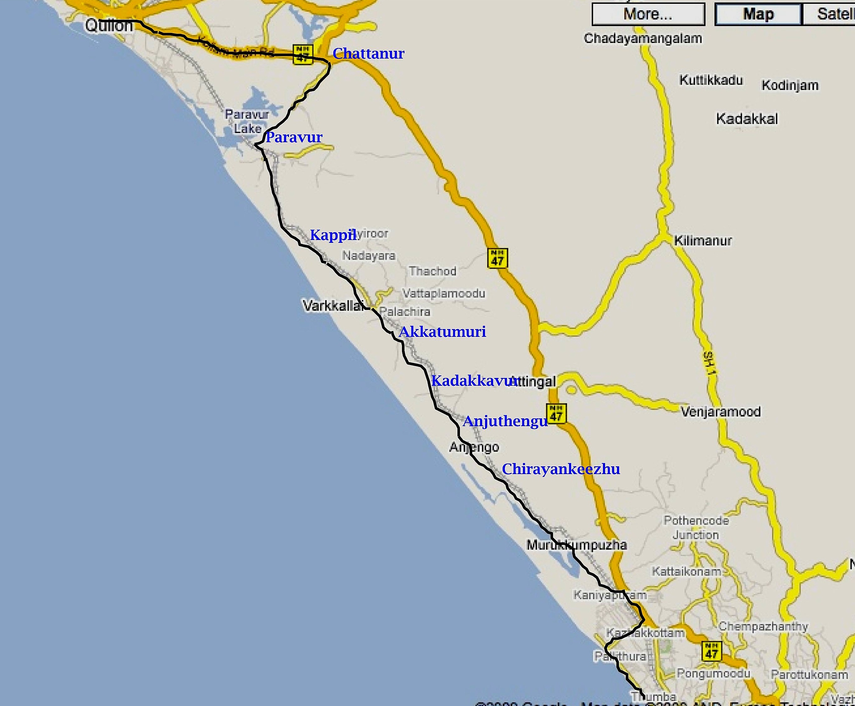 Thumba – Varkala, Kappil, Paravoor, Chattanoor- Kollam