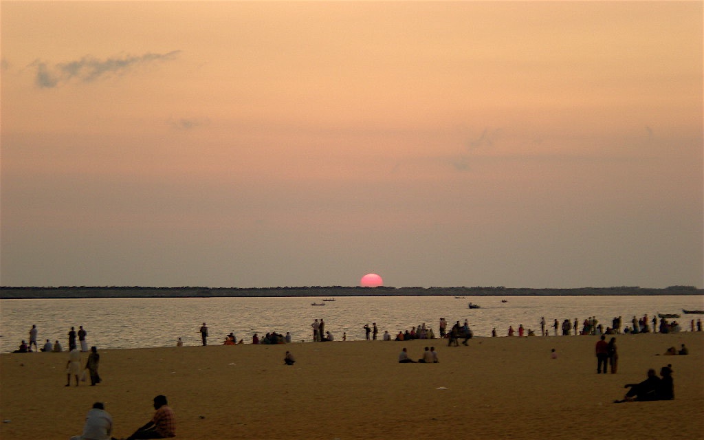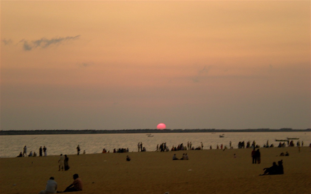 The road from there to Kollam was alongside the backwaters until I connected back with the highway at Paravoor. I wanted to reach Kollam in time to watch the sunset. The delay at a railway gate for over 20 minutes dented my hopes badly, I eventually managed to catch a glimpse of the sunset at the Kollam beach.
